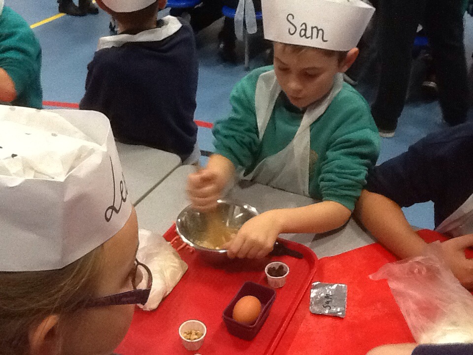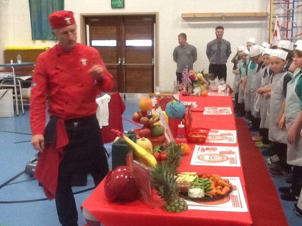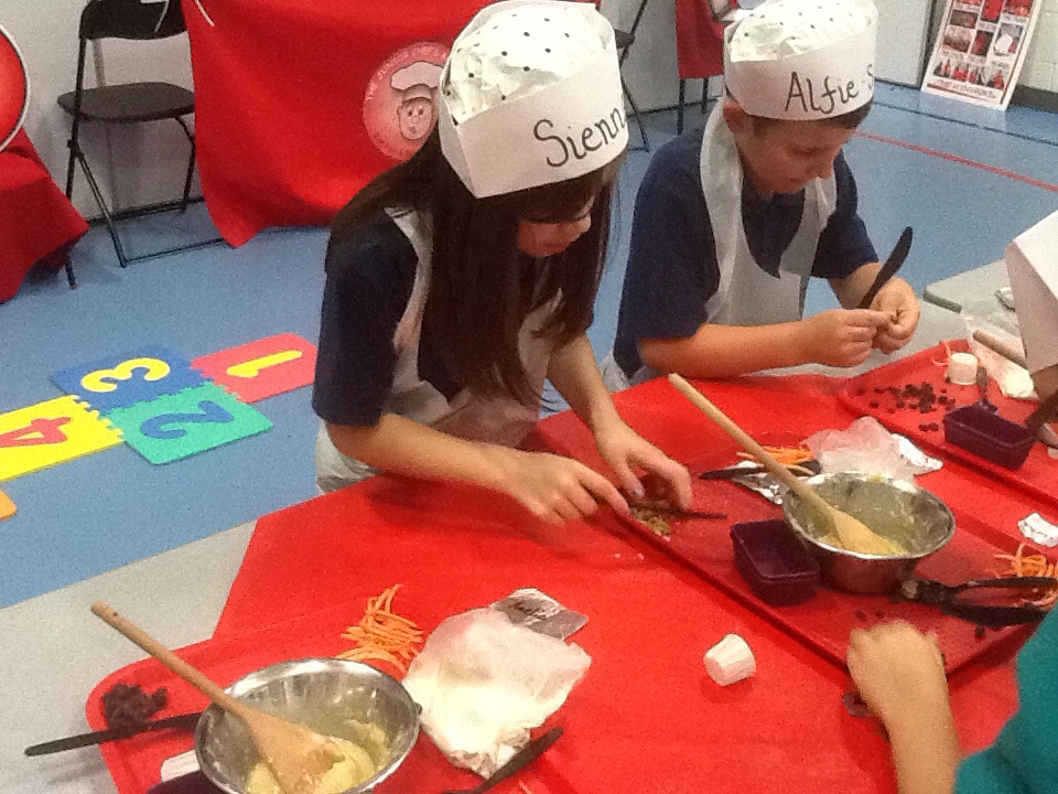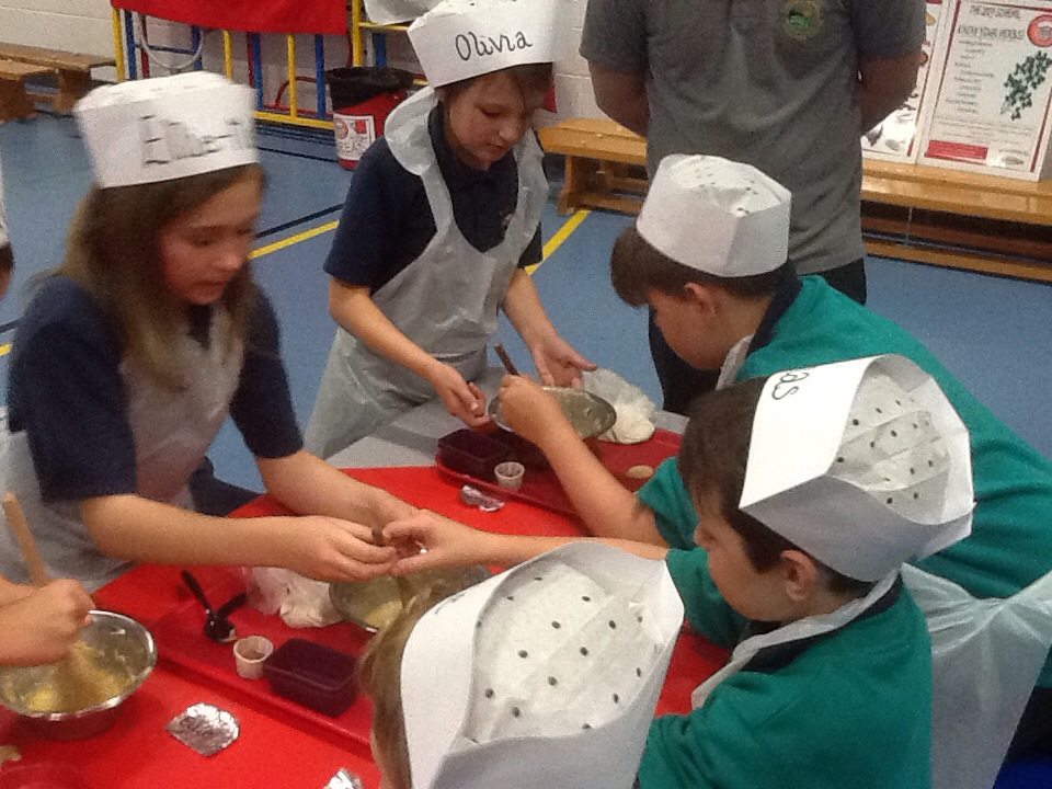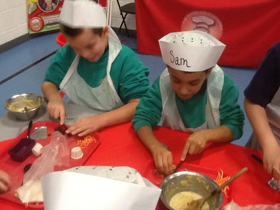 We were lucky enough to have a Junior Chef workshop in school yesterday as a result of Poppy Robinson winning the Tesco bag competition.